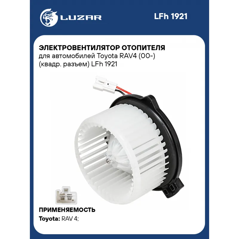 Электровентилятор отопителя для автомобилей Toyota RAV4 (00-) (квадр. разъем) Характеристики: Артикул: LFh 1921 OEM номера: 87103-42060 Количество на автомобиль: 1 Диаметр крыльчатки, мм: 140,4 Обороты, об/мин: 2600 Напряжение, В: 12 Сила тока, А: 14,5 Тип вентилятора: центробежный Высота крыльчатки, мм: 75 Мощность, Вт: 174 Подходит для авто: Toyota RAV 4 (00-), RAV 4 (00-) Для проверки применяемости отправьте VIN автомобиля через вкладку "Есть вопросы о товаре?" Комплектация: Электровентилятор отопителя - 1 шт Паспорт изделия - 1 шт Гарантия: от 1 года.