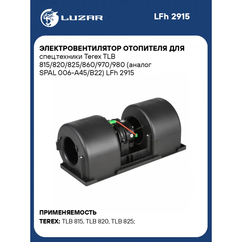 Электровентилятор отопителя для спец.техники Terex TLB 815/820/825/860/970/980 (аналог SPAL 006-A45/B22) Характеристики: Артикул: LFh 2915 OEM номера: 6193046M91, 006-A45/B22 Мощность, Вт: 204 Сила тока, А: 17 Диаметр крыльчатки, мм: - Обороты, об/мин: 3300 Высота крыльчатки, мм: - Напряжение, В: 12 Количество на автомобиль: 1 Тип вентилятора: центробежный Подходит для авто: TEREX TLB 815, TLB 820, TLB 825, TLB 860, TLB 970, TLB 980 Для проверки применяемости отправьте VIN автомобиля через вкладку "Есть вопросы о товаре?" Комплектация: Электровентилятор отопителя - 1 шт Паспорт изделия - 1 шт Гарантия: от 1 года.