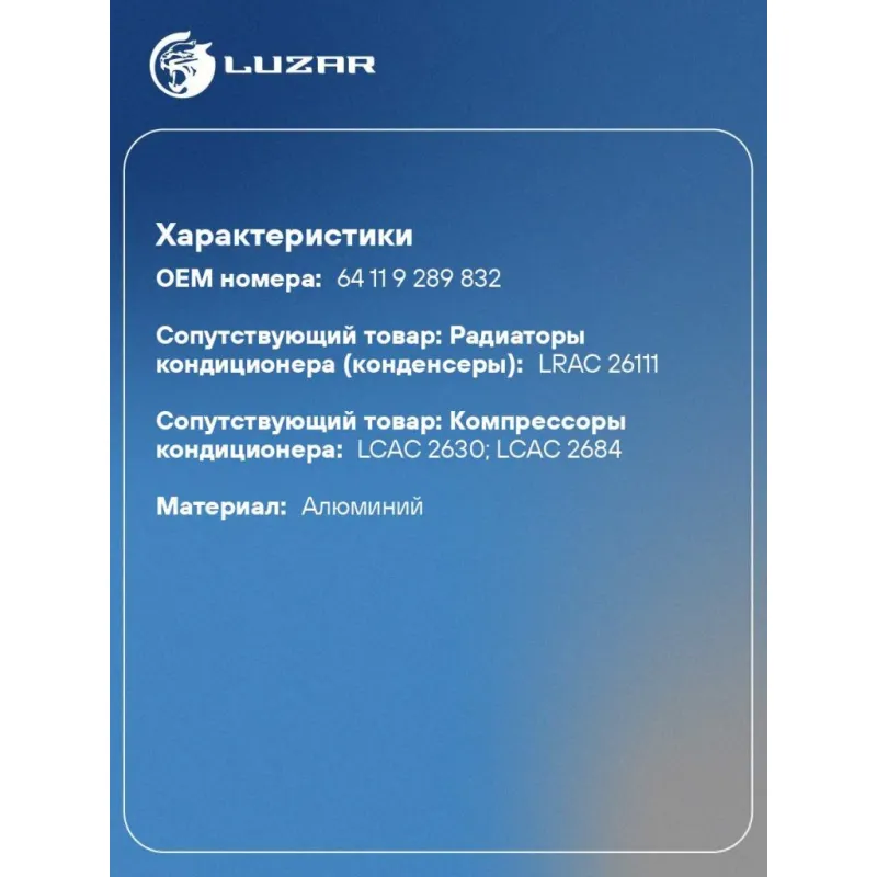 | Сопутствующий товар: Радиаторы кондиционера (конденсеры) | LRAC 26111 |