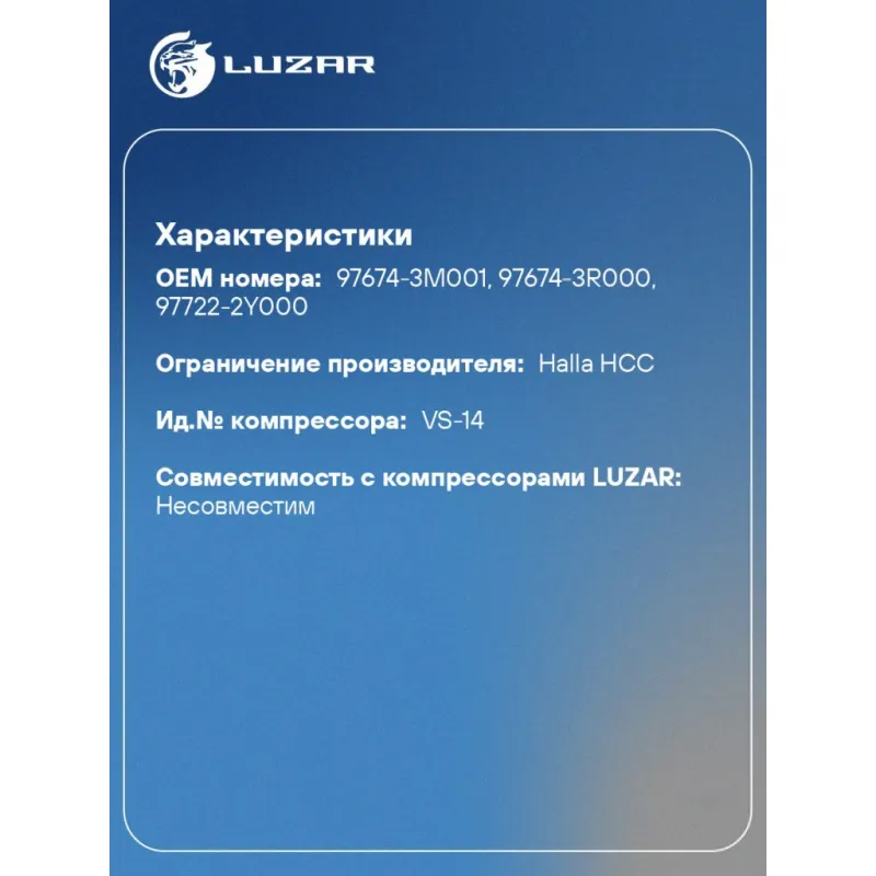 | Совместимость с компрессорами LUZAR | Несовместим |