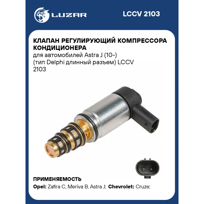 Клапан регулирующий компрессора кондиционера для автомобилей Astra J (10-) (тип Delphi длинный разъем) LCCV 2103 LUZAR