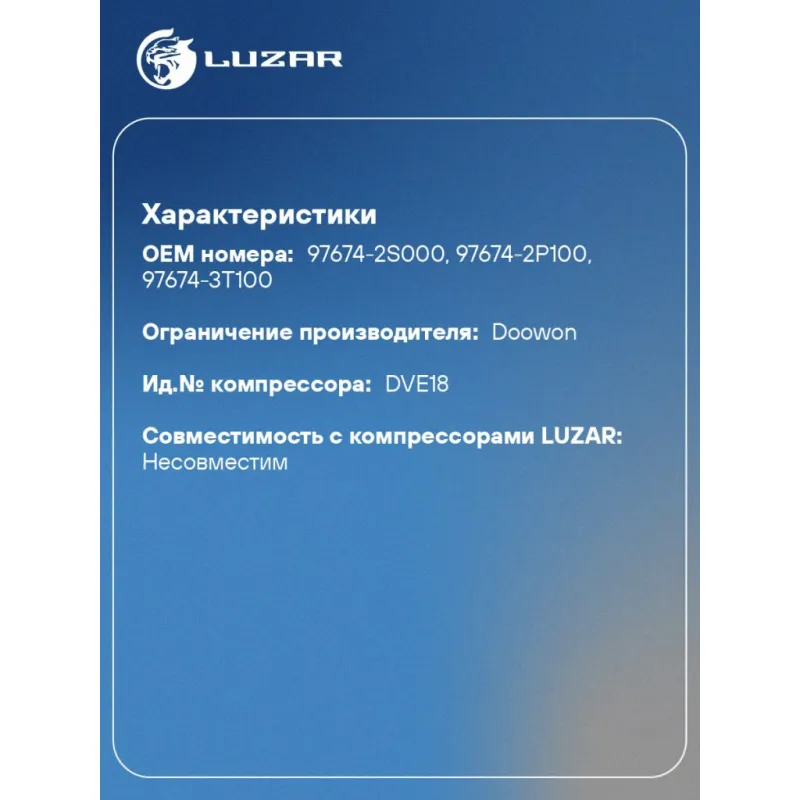 Клапан регулирующий компрессора кондиционера для автомобилей Kia Sorento II (12-) 2.4i Характеристики: Артикул: LCCV 0802 OEM номера: 97674-2S000, 97674-2P100, 97674-3T100 Ограничение производителя: Doowon Ид.№ компрессора: DVE18 Количество на автомобиль: 1 Совместимость с компрессорами LUZAR: Несовместим Подходит для авто: Kia Sorento II (09-) Для проверки применяемости отправьте VIN автомобиля через вкладку "Есть вопросы о товаре?" Комплектация: Клапан регулирующий компрессора кондиционера Паспорт изделия Гарантия: от 1 года.