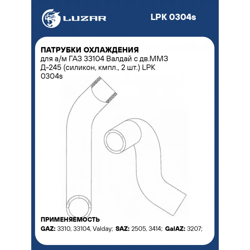 Патрубки охлаждения для а/м ГАЗ 33104 Валдай c дв.ММЗ Д-245 (силикон, кмпл., 2 шт.) Характеристики: Артикул: LPK 0304s OEM номера: 33104-1303025, 33104-1303010 Трансмиссия: МТ Кондиционер: +/- Сопутствующий товар: Радиаторы охлаждения: LRc 03104b Количество на автомобиль: 1 Материал: Силикон (синий MVQ) Аналог: LPK 0304 (Резина армированная, EPDM) Применяемость: ММЗ-245 Подходит для авто: ГАЗ 3310, 33104, Valday SAZ 2505, 3414 GalAZ 3207 Для проверки применяемости отправьте VIN автомобиля через вкладку "Есть вопросы о товаре?" Комплектация: Патрубки охлаждения (MVQ) - 2 шт Паспорт изделия. Гарантия: от 1 года.