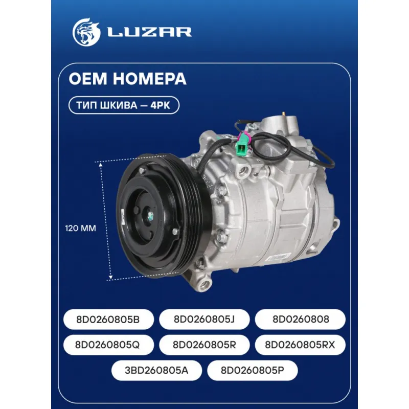 Компрессор кондиционера для автомобилей A4 (B5) (94-)/A6 (C5) (97-) 1.6i/1.8i LCAC 1804 LUZAR