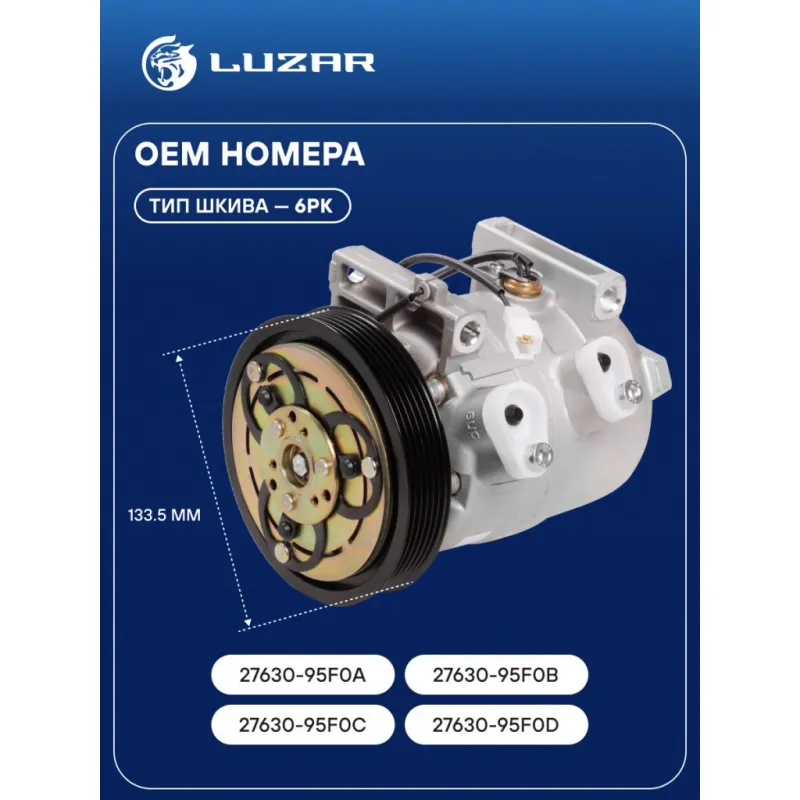 Компрессор кондиционера для автомобилей Almera Classic (05-) 1.6i Характеристики: Артикул: LCAC 1410 OEM номера: 27630-95F0A, 27630-95F0B, 27630-95F0C, 27630-95F0D Сопутствующий товар: Ресиверы-осушители: LCR 1405 Сопутствующий товар: Датчики давления хладагента: LRPS 1401 Количество на автомобиль: 1 Объём заправленного масла, мл: 200 Вид хладагента: R134a Тип шкива: 6PK Диаметр шкива, мм: 133.5 Вид заправленного масла: PAG 100 Ид.№ компрессора: DKV11C Сопутствующий товар: Радиаторы кондиционера (конденсеры): LRAC 14FC Сопутствующий товар: Клапаны расширительные кондиционера (ТРВ): LTRV 1408 Мощность, кВт: 2 Подходит для авто: Nissan Almera Classic B10 (06-) Для проверки применяемости отправьте VIN автомобиля через вкладку "Есть вопросы о товаре?" Комплектация: Компрессор кондиционера Паспорт изделия Гарантия: от 1 года.