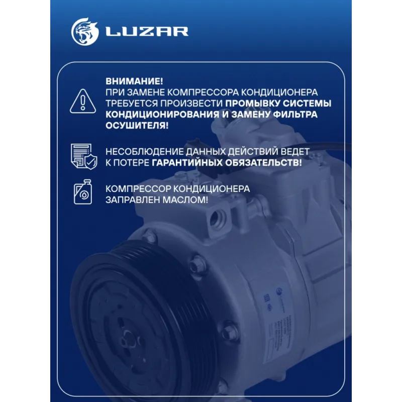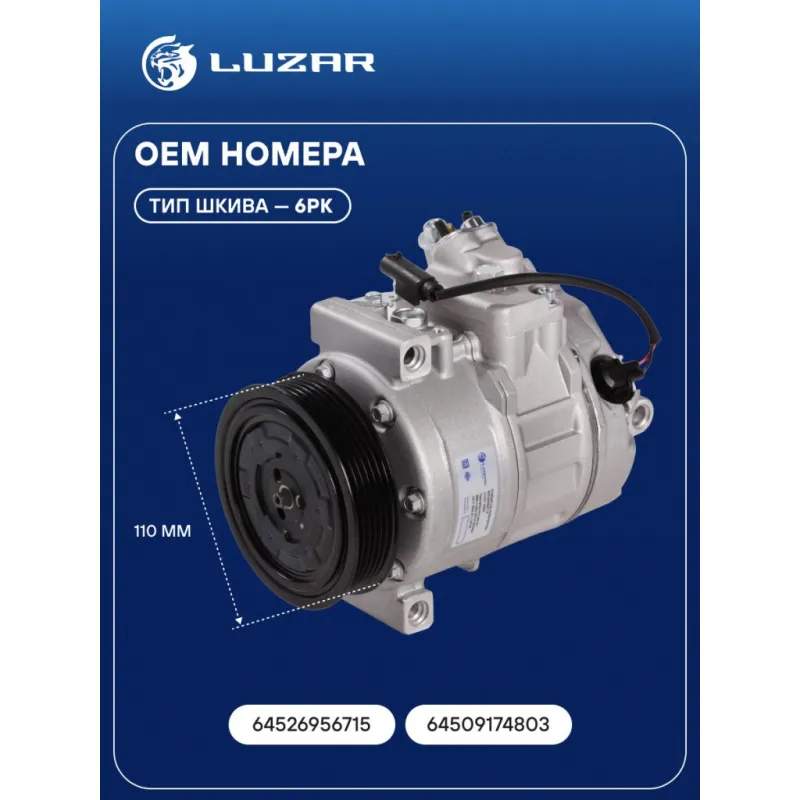Компрессор кондиционера для автомобилей BMW 5 (E60) (03-) 2.5i/3.0i Характеристики: Артикул: LCAC 26E6 OEM номера: 64526956715, 64509174803 Сопутствующий товар: Датчики давления хладагента: LRPS 2600 Сопутствующий товар: Управляющие клапаны: LCCV 1802 Комплектующие компрессора: LCCV 1802 Количество на автомобиль: 1 Объём заправленного масла, мл: 100±10 Вид хладагента: R-134a Тип шкива: 6PK Диаметр шкива, мм: 110 Вид заправленного масла: PAG 46 Ид.№ компрессора: 7SEU17C Сопутствующий товар: Радиаторы кондиционера (конденсеры): LRAC 26109 Сопутствующий товар: Клапаны расширительные кондиционера (ТРВ): LTRV 2626 Мощность, кВт: 2,5 Подходит для авто: BMW 5 E60 (03-), 6 E63/E64 (03-), 7 E65/E66 (01-) Для проверки применяемости отправьте VIN автомобиля через вкладку "Есть вопросы о товаре?" Комплектация: Компрессор кондиционера Паспорт изделия Уплотнительные колечки - 2 шт Гарантия: от 1 года.