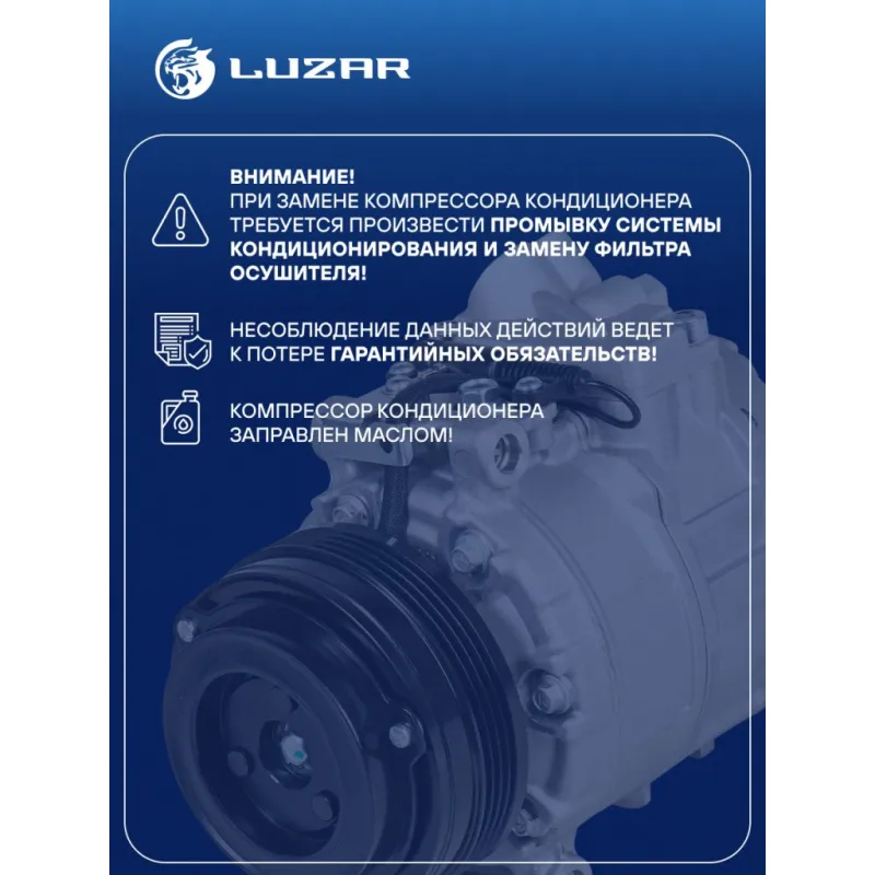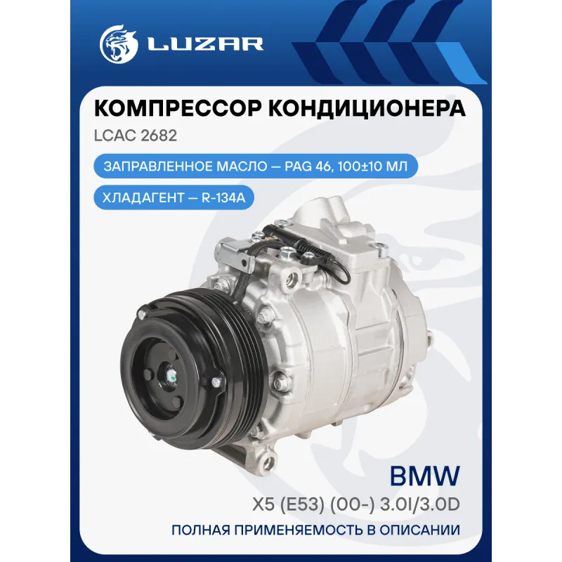 Компрессор кондиционера для автомобилей BMW X5 (E53) (00-) 3.0i/3.0D Характеристики: Артикул: LCAC 2682 OEM номера: 64526918000 Сопутствующий товар: Датчики давления хладагента: LRPS 2600 Сопутствующий товар: Управляющие клапаны: LCCV 0501 Комплектующие компрессора: LCCV 0501 Количество на автомобиль: 1 Объём заправленного масла, мл: 100±10 Вид хладагента: R-134a Тип шкива: 4PK Диаметр шкива, мм: 110 Вид заправленного масла: PAG 46 Ид.№ компрессора: CSV717 Сопутствующий товар: Клапаны расширительные кондиционера (ТРВ): LTRV 2625 Мощность, кВт: 2,5 Подходит для авто: BMW X5 E53 (99-), X5 E53 (99-) Для проверки применяемости отправьте VIN автомобиля через вкладку "Есть вопросы о товаре?" Комплектация: Компрессор кондиционера Паспорт изделия Гарантия: от 1 года.