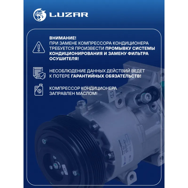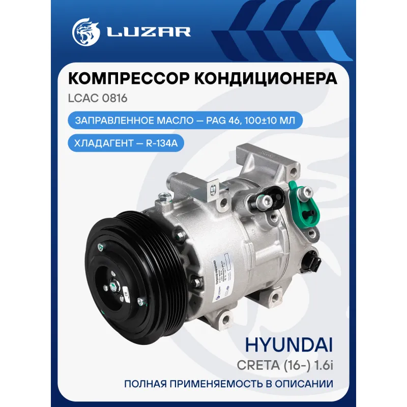 Компрессор кондиционера для автомобилей Creta (16-) 1.6i Характеристики: Артикул: LCAC 0816 OEM номера: 97701-M0000 Сопутствующий товар: Датчики давления хладагента: LRPS 0804 Количество на автомобиль: 1 Объём заправленного масла, мл: 100±10 Вид хладагента: R-134a Тип шкива: 6PK Диаметр шкива, мм: 124 Вид заправленного масла: PAG 46 Ид.№ компрессора: DWE14N Сопутствующий товар: Радиаторы кондиционера (конденсеры): LRAC 08M0 Сопутствующий товар: Управляющие клапаны: LCCV 0806 Комплектующие компрессора: LCCV 0806 Мощность, кВт: 2 Подходит для авто: Hyundai Creta (16-) Для проверки применяемости отправьте VIN автомобиля через вкладку "Есть вопросы о товаре?" Комплектация: Компрессор кондиционера Паспорт изделия Уплотнительные колечки - 2 шт Гарантия: от 1 года.