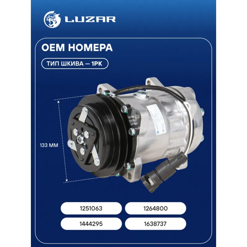 Компрессор кондиционера для автомобилей DAF 95 XF (97-) Характеристики: Артикул: LCAC 2802 OEM номера: 1251063, 1264800, 1444295, 1638737 Сопутствующий товар: Радиаторы кондиционера (конденсеры): LRAC 2801 Сопутствующий товар: Ресиверы-осушители: LCR 2803 Количество на автомобиль: 1 Объём заправленного масла, мл: 180±20 Вид хладагента: R-134a Тип шкива: 1PK Диаметр шкива, мм: 133 Вид заправленного масла: PAG 100 Ид.№ компрессора: 7H15 Мощность, кВт: 2,5 Напряжение, В: 24 Подходит для авто: DAF 95 XF (97-) Для проверки применяемости отправьте VIN автомобиля через вкладку "Есть вопросы о товаре?" Комплектация: Компрессор кондиционера Паспорт изделия Гарантия: от 1 года.