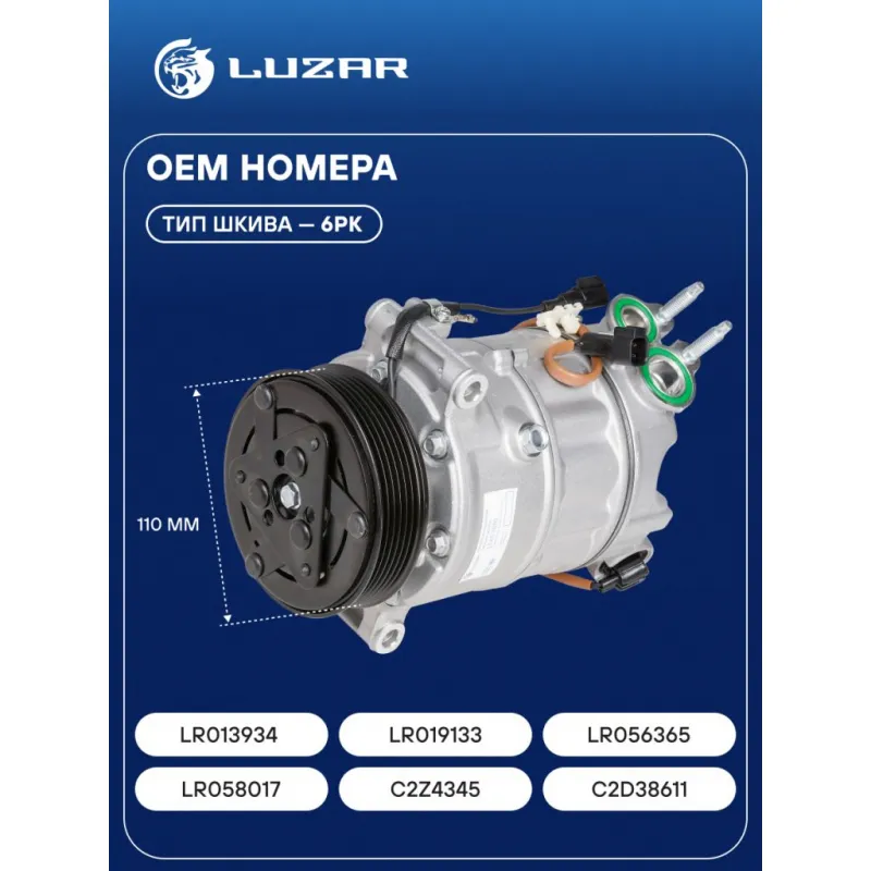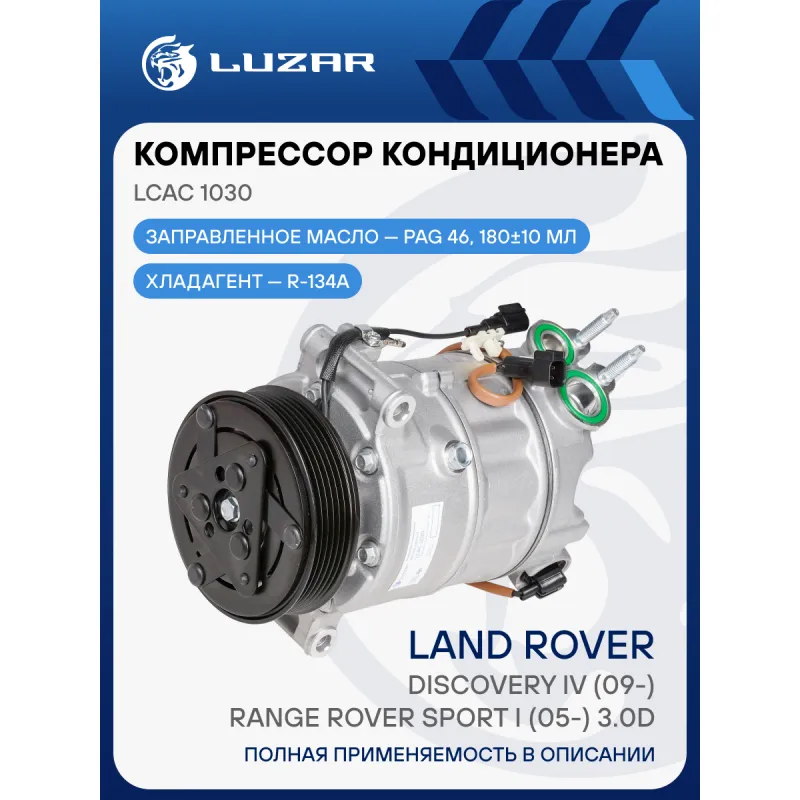 Компрессор кондиционера для автомобилей Discovery IV (09-)/Range Rover Sport I (05-) 3.0D Характеристики: Артикул: LCAC 1030 OEM номера: C2Z4345, C2D38611, LR013934, LR019133, LR056365, LR058017 Количество на автомобиль: 1 Объём заправленного масла, мл: 180±10 Вид хладагента: R-134a Тип шкива: 6PK Диаметр шкива, мм: 110 Вид заправленного масла: PAG 46 Ид.№ компрессора: PXC16 Сопутствующий товар: Радиаторы кондиционера (конденсеры): LRAC 1014 Мощность, кВт: 2.5 Подходит для авто: Land Rover Discovery IV (09-), Range Rover Sport I (05-) Jaguar XF (07-) Для проверки применяемости отправьте VIN автомобиля через вкладку "Есть вопросы о товаре?" Комплектация: Компрессор кондиционера Паспорт изделия Гарантия: от 1 года.