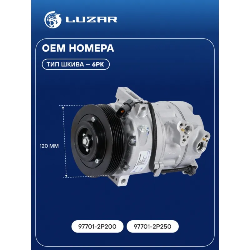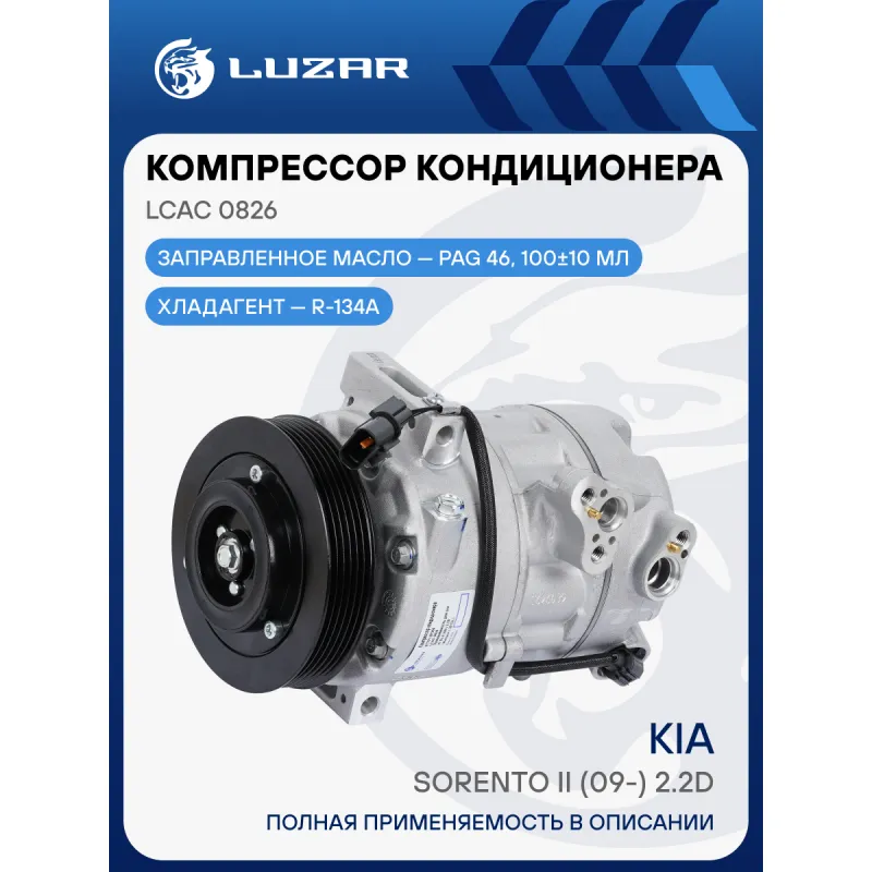 Компрессор кондиционера для автомобилей KIA Sorento II (09-) 2.2D (выпуск c 2012г.) Характеристики: Артикул: LCAC 0826 OEM номера: 97701-2P200, 97701-2P250 Сопутствующий товар: Клапаны расширительные кондиционера (ТРВ): LTRV 0803 Сопутствующий товар: Датчики давления хладагента: LRPS 0807 Количество на автомобиль: 1 Объём заправленного масла, мл: 100±10 Вид хладагента: R134a Тип шкива: 6PK Диаметр шкива, мм: 120 Вид заправленного масла: PAG 46 Ид.№ компрессора: 7SEU17 Сопутствующий товар: Радиаторы кондиционера (конденсеры): LRAC 0823 Мощность, кВт: 2,5 Подходит для авто: Kia Sorento II (09-) Для проверки применяемости отправьте VIN автомобиля через вкладку "Есть вопросы о товаре?" Комплектация: Компрессор кондиционера Паспорт изделия Уплотнительные кольца - 2 шт Гарантия: от 1 года.