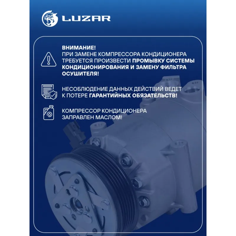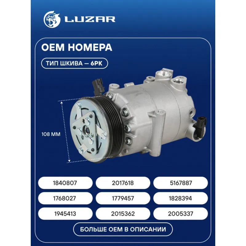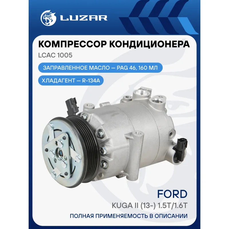 Компрессор кондиционера для автомобилей Kuga II (13-) 1.5T/1.6T Характеристики: Артикул: LCAC 1005 OEM номера: 1840807, CV61-19D629-CA, CV61-19D629-CB, CV61-19D629-CC, CV61-19D629-CD, CV61-19D629-CE, 1945413, CV61-19D629-CF, CV61-19D629-CG, 2015362, GV61-19D629-CC, 2005337, CV6Z19703F, 2017618, 5167887, 1768027, 1779457, 1828394 Сопутствующий товар: Датчики давления хладагента: LRPS 1002 Количество на автомобиль: 1 Объём заправленного масла, мл: 160 Вид хладагента: R134a Тип шкива: 6PK Диаметр шкива, мм: 108 Вид заправленного масла: PAG 46 Ид.№ компрессора: VS-16 Сопутствующий товар: Радиаторы кондиционера (конденсеры): LRAC 1068; LRAC 1069 Мощность, кВт: 2,5 Подходит для авто: Ford Kuga (13-) Для проверки применяемости отправьте VIN автомобиля через вкладку "Есть вопросы о товаре?" Комплектация: Компрессор кондиицонера Паспорт изделия Гарантия: от 1 года.