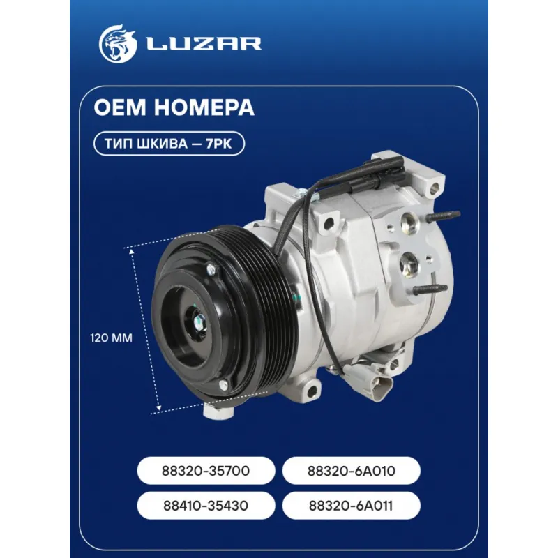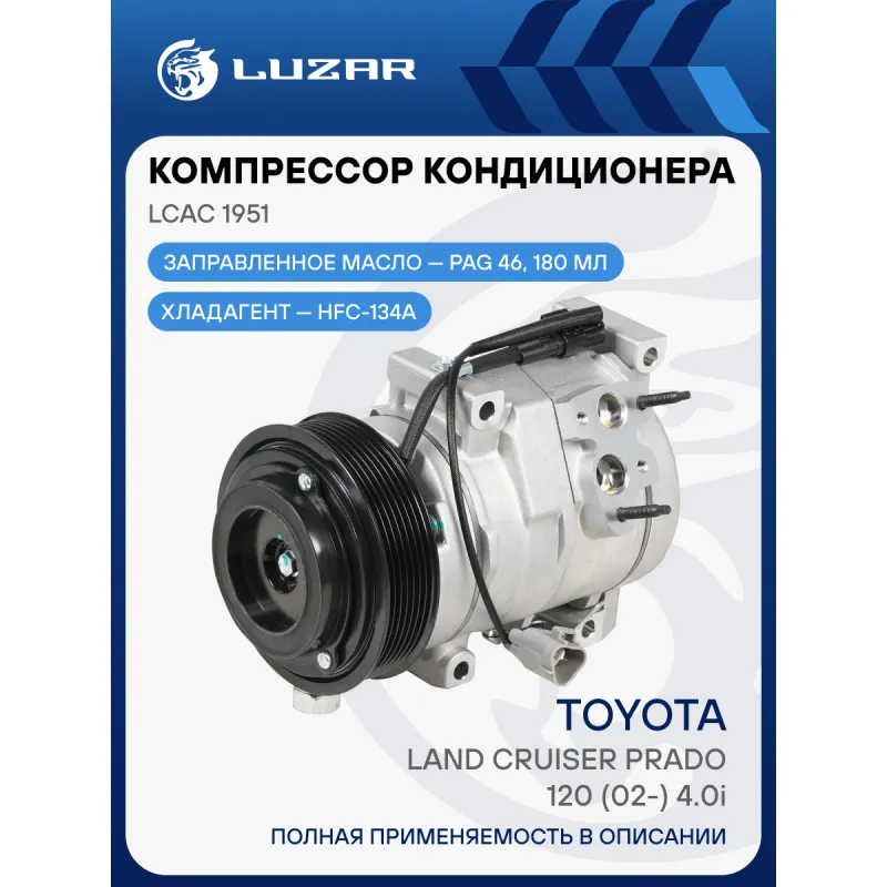 Компрессор кондиционера для автомобилей Land Cruiser Prado 120 (02-) 4.0i Характеристики: Артикул: LCAC 1951 OEM номера: 88320-35700, 88320-6A010, 88410-35430, 88320-6A011 Сопутствующий товар: Радиаторы кондиционера (конденсеры): LRAC 1951, LRAC 1952; Сопутствующий товар: Ресиверы-осушители: LCD 1901 Сопутствующий товар: Клапаны расширительные кондиционера (ТРВ): LTRV 1951 Сопутствующий товар: Датчики давления хладагента: LRPS 1902 Количество на автомобиль: 1 Объём заправленного масла, мл: 180 Вид хладагента: HFC-134a Тип шкива: 7PK Диаметр шкива, мм: 120 Вид заправленного масла: PAG 46 Ид.№ компрессора: 10S17C Мощность, кВт: 2,5 Подходит для авто: Toyota Land Cruiser Prado 120 (02-) Для проверки применяемости отправьте VIN автомобиля через вкладку "Есть вопросы о товаре?" Комплектация: Компрессор кондиционера Паспорт изделия Гарантия: от 1 года.