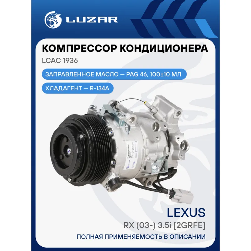 Компрессор кондиционера для автомобилей Lexus RX (03-) 3.5i [2GRFE] Характеристики: Артикул: LCAC 1936 OEM номера: 88320-48120 Сопутствующий товар: Ресиверы-осушители: LCD 1901 Сопутствующий товар: Клапаны расширительные кондиционера (ТРВ): LTRV 1189 Сопутствующий товар: Датчики давления хладагента: LRPS 1918 Количество на автомобиль: 1 Объём заправленного масла, мл: 100±10 Вид хладагента: R134a Тип шкива: 7PK Диаметр шкива, мм: 115 Вид заправленного масла: PAG 46 Ид.№ компрессора: 6SBU16C Сопутствующий товар: Радиаторы кондиционера (конденсеры): LRAC 1930; Мощность, кВт: 2,5 Подходит для авто: Lexus RX II (03-) Для проверки применяемости отправьте VIN автомобиля через вкладку "Есть вопросы о товаре?" Комплектация: Компрессор кондиционера Паспорт изделия Уплотнительные колечки - 2 шт Гарантия: от 1 года.