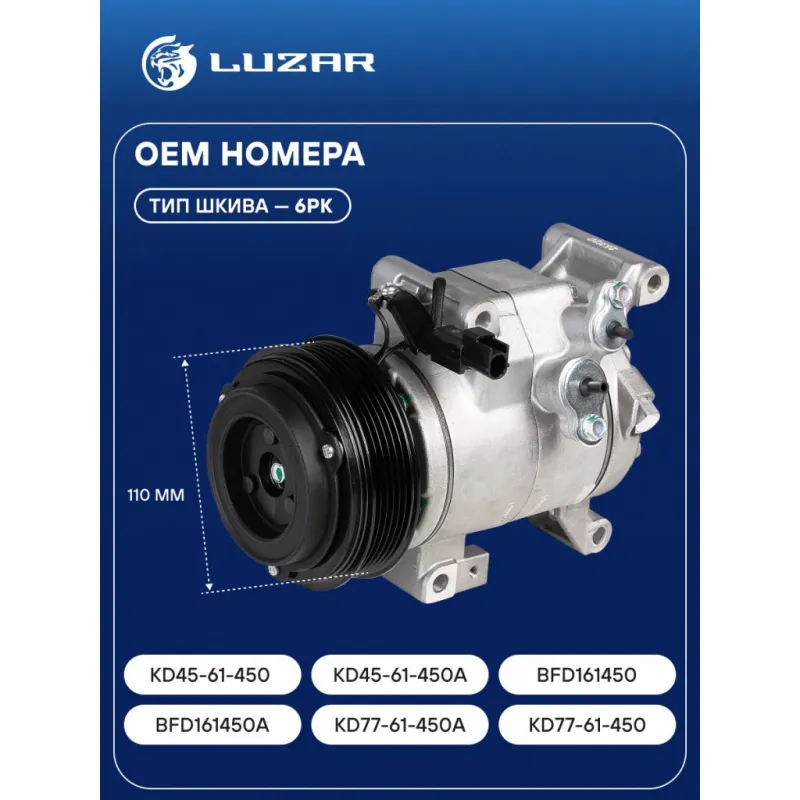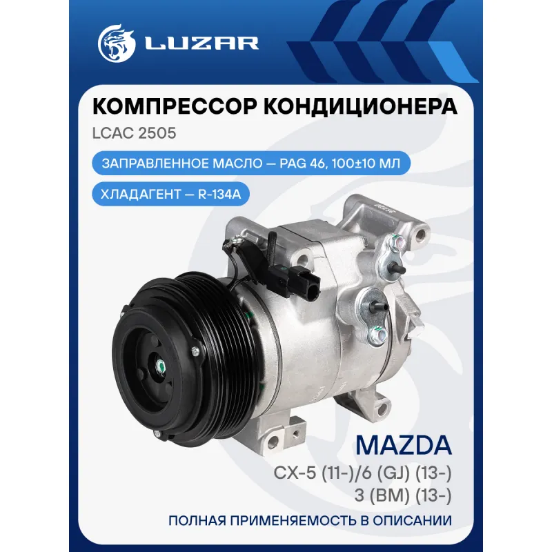 Компрессор кондиционера для автомобилей Mazda CX-5 (11-)/6 (GJ) (13-)/3 (BM) (13-) Характеристики: Артикул: LCAC 2505 OEM номера: KD45-61-450, KD45-61-450A, BFD161450, BFD161450A, KD77-61-450A, KD77-61-450 Сопутствующий товар: Датчики давления хладагента: LRPS 1401 Количество на автомобиль: 1 Объём заправленного масла, мл: 100±10 Вид хладагента: R-134a Тип шкива: 6PK Диаметр шкива, мм: 110 Вид заправленного масла: PAG 46 Ид.№ компрессора: RS13 Сопутствующий товар: Радиаторы кондиционера (конденсеры): LRAC 251EP Мощность, кВт: 2 Подходит для авто: Mazda 6 (13-), CX-5 (12-), 3 (13-), CX-5 (17-) Для проверки применяемости отправьте VIN автомобиля через вкладку "Есть вопросы о товаре?" Комплектация: Компрессор кондиционера Паспорт изделия Уплотнительные колечки - 2 шт Гарантия: от 1 года.