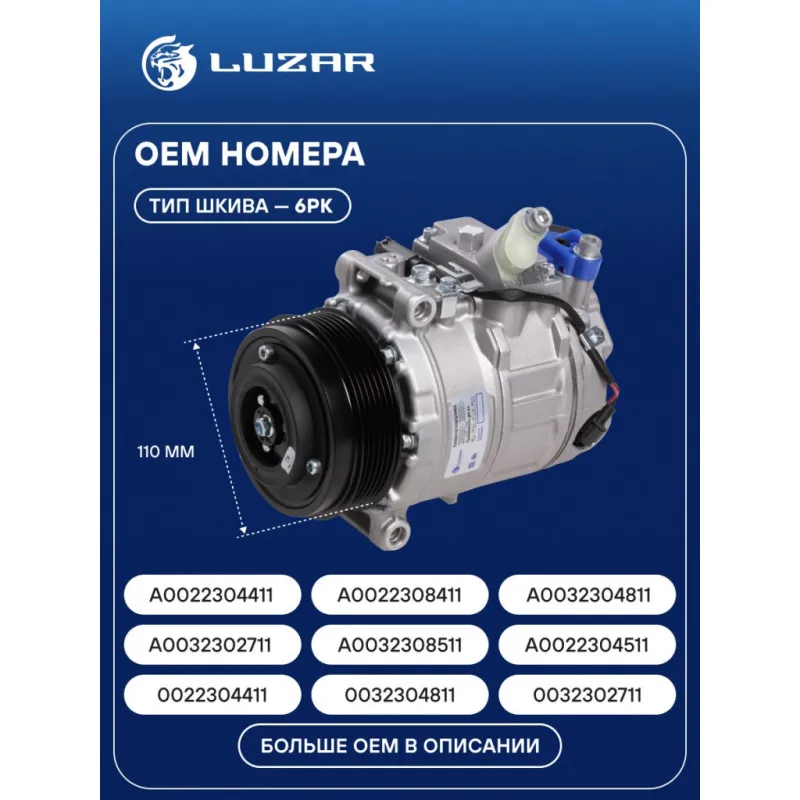 Компрессор кондиционера для автомобилей Mercedes-Benz C (W204) (07-)/E (W212) (09-) CGI Характеристики: Артикул: LCAC 1550 OEM номера: A0022304411, A0022308411, A0032304811, A0032302711, A0032308511, A0022304511, 0022304511, 003230481180, A0022303111, A0022305011, A0008307300, A0008302500, A003230481180, 0022304411, 002 230 84 11, 0032304811, 0032302711, 0032308511, A0022307311 Сопутствующий товар: Датчики давления хладагента: LRPS 1550 Сопутствующий товар: Управляющие клапаны: LCCV 1802 Комплектующие компрессора: LCCV 1802 Количество на автомобиль: 1 Объём заправленного масла, мл: 100±10 Вид хладагента: R 134a Тип шкива: 6PK Диаметр шкива, мм: 110 Вид заправленного масла: PAG 46 Ид.№ компрессора: 6SEU16C Сопутствующий товар: Радиаторы кондиционера (конденсеры): LRAC 1512 Сопутствующий товар: Клапаны расширительные кондиционера (ТРВ): LTRV 1550 Сопутствующий товар: Ресиверы-осушители: LCD 1808 Мощность, кВт: 2,5 Подходит для авто: Mercedes-Benz C-Class W204 (07-), E-Class W212 (09-) Для проверки применяемости отправьте VIN автомобиля через вкладку "Есть вопросы о товаре?" Комплектация: Компрессор кондиционера Паспорт изделия Уплотнительные колечки - 2 шт Гарантия: от 1 года.