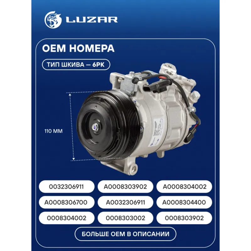 Компрессор кондиционера для автомобилей Mercedes-Benz С (W205) (14-)/GLC (X253) (15-)/E (W213) (16-) LCAC 1503 LUZAR