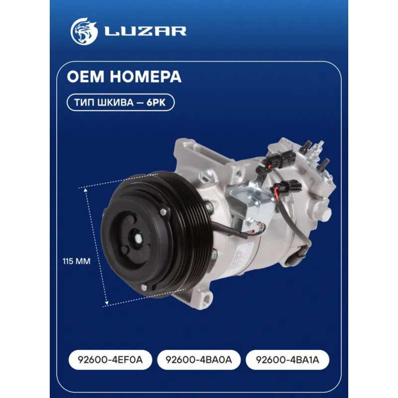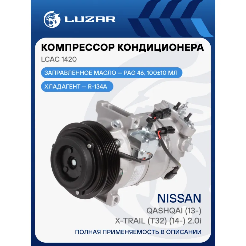 Компрессор кондиционера для автомобилей Qashqai (13-)/X-Trail (T32) (14-) 2.0i Характеристики: Артикул: LCAC 1420 OEM номера: 92600-4EF0A, 92600-4BA0A, 92600-4BA1A Сопутствующий товар: Датчики давления хладагента: LRPS 1401 Сопутствующий товар: Управляющие клапаны: LCCV 1802 Комплектующие компрессора: LCCV 1802 Количество на автомобиль: 1 Объём заправленного масла, мл: 100±10 Вид хладагента: R134a Тип шкива: 6PK Диаметр шкива, мм: 115 Вид заправленного масла: PAG 46 Ид.№ компрессора: 6SBH14C Сопутствующий товар: Радиаторы кондиционера (конденсеры): LRAC 14CM; LRAC 14EA Мощность, кВт: 2,5 Подходит для авто: Nissan Qashqai II J11 (13-), X-Trail T32 (14-) Для проверки применяемости отправьте VIN автомобиля через вкладку "Есть вопросы о товаре?" Комплектация: Компрессор кондиционера Паспорт изделия Уплотнительные колечки - 2 шт Гарантия: от 1 года.