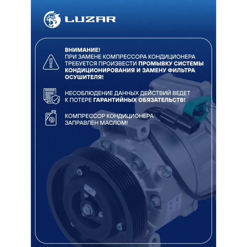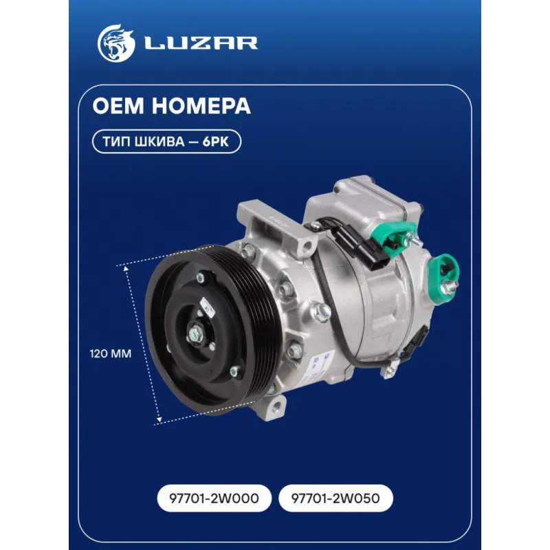Компрессор кондиционера для автомобилей Santa Fe III (12-) 2.2CRDi Характеристики: Артикул: LCAC 0822 OEM номера: 97701-2W000, 97701-2W050 Сопутствующий товар: Клапаны расширительные кондиционера (ТРВ): LTRV 0811 Сопутствующий товар: Управляющие клапаны: LCCV 1431 Комплектующие компрессора: LCCV 1431 Количество на автомобиль: 1 Объём заправленного масла, мл: 100±10 Вид хладагента: R-134a Тип шкива: 6PK Диаметр шкива, мм: 120 Вид заправленного масла: PAG 46 Ид.№ компрессора: VS-18 Сопутствующий товар: Радиаторы кондиционера (конденсеры): LRAC 0821 Сопутствующий товар: Ресиверы-осушители: LCD 0801 Мощность, кВт: 2,5 Подходит для авто: Hyundai Santa Fe III (12-) Для проверки применяемости отправьте VIN автомобиля через вкладку "Есть вопросы о товаре?" Комплектация: Компрессор кондиционера Паспорт изделия Уплотнительные колечки - 2 шт Гарантия: от 1 года.