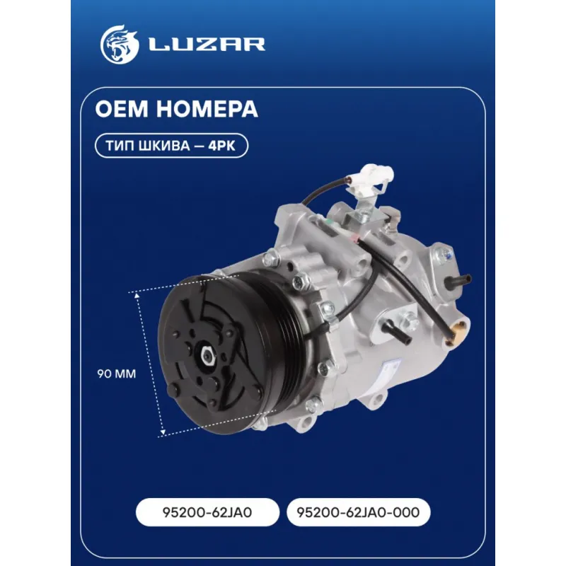 Компрессор кондиционера для автомобилей SX4 (06-) 1.6i Характеристики: Артикул: LCAC 2479 OEM номера: 95200-62JA0, 95200-62JA0-000 Количество на автомобиль: 1 Объём заправленного масла, мл: 60 Вид хладагента: R134a Тип шкива: 4PK Диаметр шкива, мм: 90 Вид заправленного масла: PAG 46 Ид.№ компрессора: MSC60C Сопутствующий товар: Радиаторы кондиционера (конденсеры): LRAC 2462; LRAC 2479 Сопутствующий товар: Ресиверы-осушители: LCD 1901 Мощность, кВт: 1,5 Подходит для авто: Suzuki SX4 I (06-) Для проверки применяемости отправьте VIN автомобиля через вкладку "Есть вопросы о товаре?" Комплектация: Компрессор кондиционера Паспорт изделия Гарантия: от 1 года.
