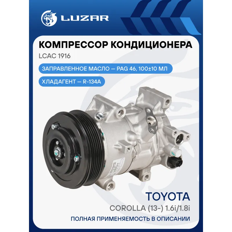 Компрессор кондиционера для автомобилей Toyota Corolla (13-) 1.6i/1.8i Характеристики: Артикул: LCAC 1916 OEM номера: 88310-02790, 88310-1A840, 88310-1A841, 88310-02780 Сопутствующий товар: Датчики давления хладагента: LRPS 1918 Количество на автомобиль: 1 Объём заправленного масла, мл: 100±10 Вид хладагента: R-134a Тип шкива: 6PK Диаметр шкива, мм: 120 Вид заправленного масла: PAG 46 Ид.№ компрессора: 6SES14C Сопутствующий товар: Радиаторы кондиционера (конденсеры): LRAC 1980 Сопутствующий товар: Ресиверы-осушители: LCD 1901 Мощность, кВт: 2,5 Подходит для авто: Toyota Auris II (12-), Corolla E180 (13-), Corolla E210 (18-), Avensis (09-) Для проверки применяемости отправьте VIN автомобиля через вкладку "Есть вопросы о товаре?" Комплектация: Компрессор кондиционера Паспорт изделия Уплотнительные колечки - 2 шт Гарантия: от 1 года.