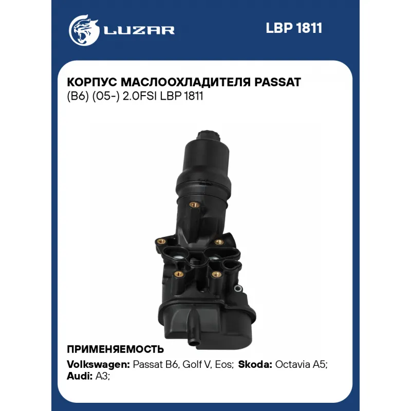 Корпус маслоохладителя Passat (B6) (05-) 2.0FSI Характеристики: Артикул: LBP 1811 OEM номера: 06D115397K, 06D115397G, 06D115397J, 06D115397D Количество на автомобиль: 1 Трансмиссия: MT/AT Кондиционер: +/- Материал: полиамид Применение: [AXW; BLR; BLX; BLY; BVX; BVY; BVZ] Подходит для авто: Volkswagen Passat B6 (05-), Golf V (03-), Eos (06-), Touran (03-) Skoda Octavia A5 (04-) Audi A3 (03-) Для проверки применяемости отправьте VIN автомобиля через вкладку "Есть вопросы о товаре?" Комплектация: Корпус маслоохладителя Прокладка уплотнительная Паспорт изделия Гарантия: от 1 года.
