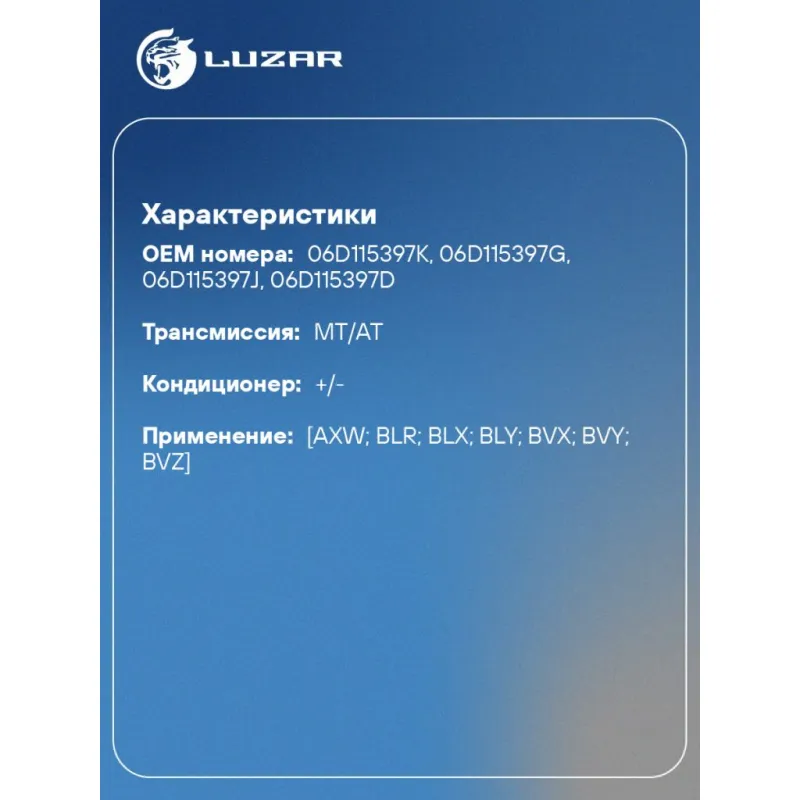 | Количество на автомобиль | 1 |