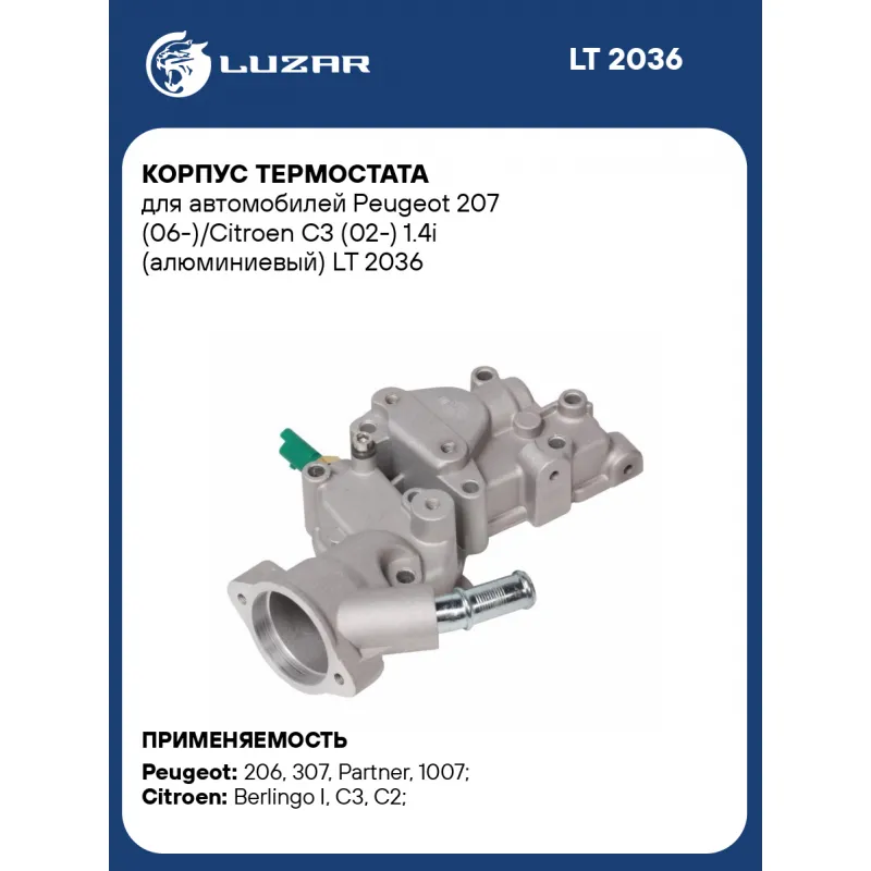 Корпус термостата для автомобилей Peugeot 207 (06-)/Citroen C3 (02-) 1.4i (алюминиевый) Характеристики: Артикул: LT 2036 OEM номера: 1336.Y8, 9654775080, 1336.P9 Количество на автомобиль: 1 Трансмиссия: MT/AT Сопутствующий товар: Насосы водяные (помпы): LWP 2002; LWP 2023 Сопутствующий товар: Радиаторы охлаждения: LRc 2009; LRc 20F4; LRc 20G1; LRc 20W2 Сопутствующий товар: Электровентиляторы охлаждения: LFc 20206; LFK 20206; LFK 20207; LFK 2022; LFK 20308 Материал: алюминий Комплектация: уплотнительная прокладка Подходит для авто: Peugeot 206 (00-), 307 (00-), Partner (96-), 1007 (05-) Citroen Berlingo I (96-), C3 (02-), C2 (03-) Для проверки применяемости отправьте VIN автомобиля через вкладку "Есть вопросы о товаре?" Комплектация: Корпус термостата - 1 шт Уплотнительная прокладка - 1 шт Паспорт изделия - 1 шт Гарантия: от 1 года.