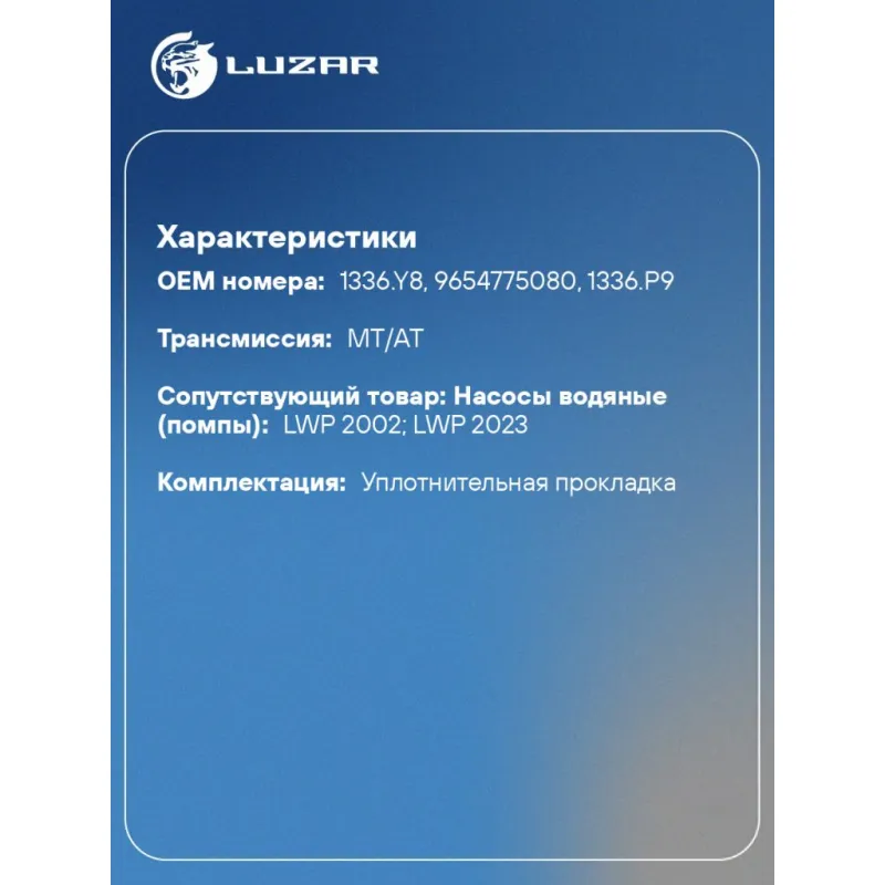 | Сопутствующий товар: Насосы водяные (помпы) | LWP 2002; LWP 2023 |