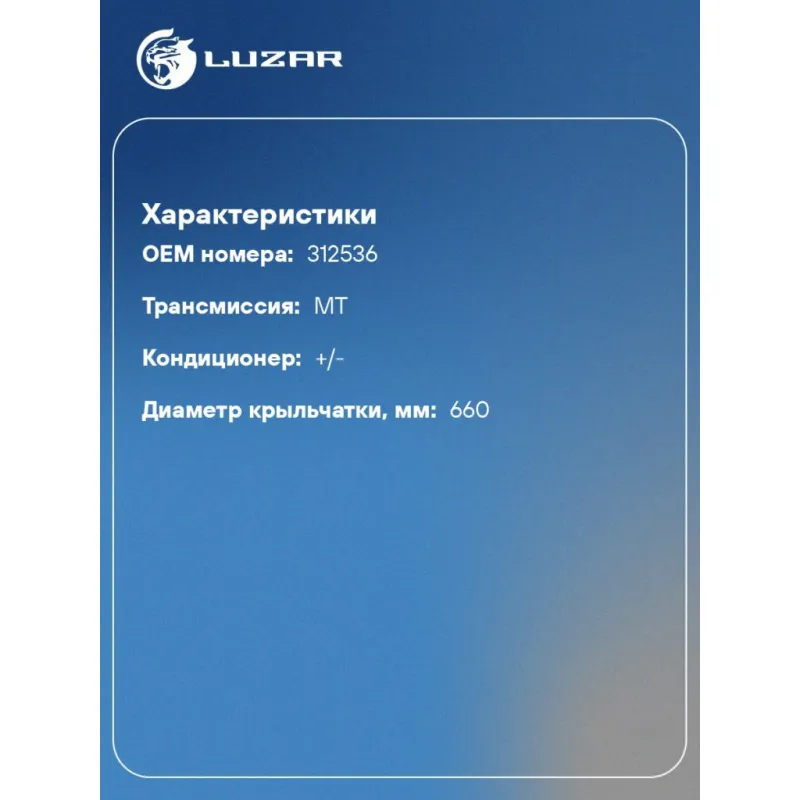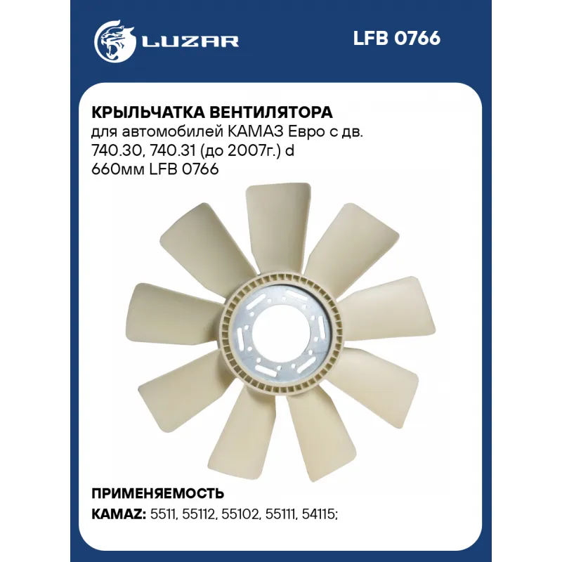Крыльчатка вентилятора для автомобилей КАМАЗ Евро с дв. 740.30, 740.31 (до 2007г.) d 660мм Характеристики: Артикул: LFB 0766 OEM номера: 312536 Температура включения, °С: - Температура выключения, °С: - Количество на автомобиль: 1 Трансмиссия: MT Кондиционер: +/- Диаметр крыльчатки, мм: 660 Подходит для авто: КамаАЗ 5511, 55112, 55102, 55111, 54115 Для проверки применяемости отправьте VIN автомобиля через вкладку "Есть вопросы о товаре?" Комплектация: Крыльчатка вентилятора - 1 шт Паспорт изделия - 1 шт Гарантия: от 1 года.