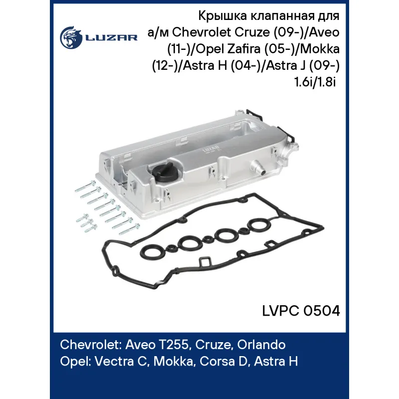 Крышка клапанная для а/м Chevrolet Cruze (09-)/Aveo (11-)/Opel Zafira (05-)/Mokka (12-)/Astra H (04-)/Astra J (09-) 1.6i/1.8i (алюм., с прокл.) Характеристики: Артикул: LVPC 0504 OEM номера: 5607187, 0656175, 5607258, 6 56 175, 55558673, 55564395, 55558118, 055564395, 055558673, 96889998 Материал прокладки: ACM Материал клапанной крышки: алюминиевый сплав Сопутствующие товары: прокладка клапанной крышки: LES 20512 Сопутствующие товары: мембрана маслоотделителя: LGS 0009 Количество на автомобиль: 1 Комплектующие: LES 20512 Подходит для авто: Chevrolet Aveo T255 (08-), Cruze (09-), Orlando (10-), Aveo T300 (11-) Opel Vectra C (02-), Mokka (13-), Corsa D (06-), Astra H (04-), Zafira B (05-), Astra J (10-) Для проверки применяемости отправьте VIN автомобиля через вкладку "Есть вопросы о товаре?" Комплектация: Прокладка - 1 шт клапанная крышка - 1 шт Болт крепления - 11 шт Гарантия: от 1 года.