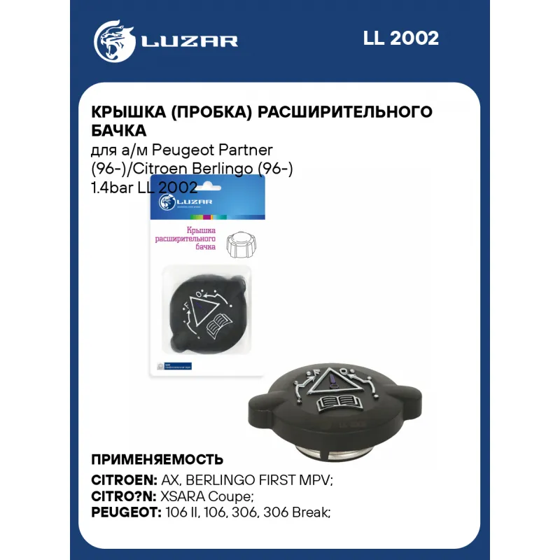 Крышка (пробка) расширительного бачка для а/м Peugeot Partner (96-)/Citroen Berlingo (96-) 1.4bar Характеристики: Артикул: LL 2002 OEM номера: 1306C7, 130699, 130684 Трансмиссия: MT/AT Кондиционер: +/- Давление, БАР: 1.4 (140кПа) Сопутствующий товар: Радиаторы охлаждения: LRc 20F4 Количество на автомобиль: 1 Материал: пластик ... Читать полностью →