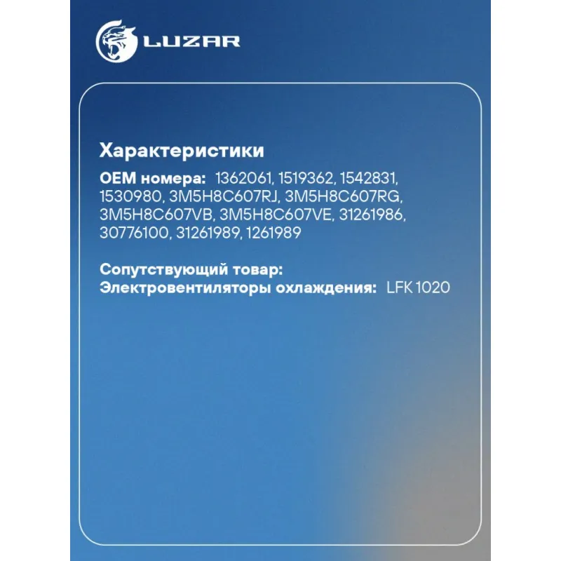 Совместимость устанавливается на э/вентилятор охлаждения LFK 1020