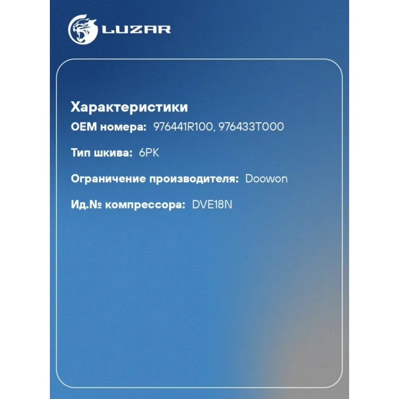 Совместимость с компрессорами LUZAR Несовместим