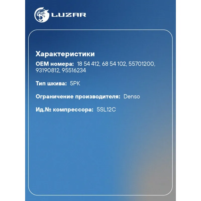 | Совместим с компрессорами кондиционера | 1854412, 55701200, 68 54 102, 93190812, 95516234 |