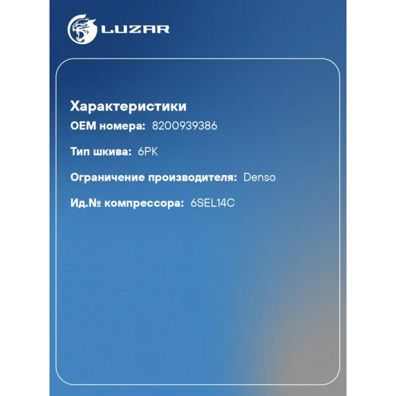 | Совместимость с компрессорами LUZAR | Несовместим |