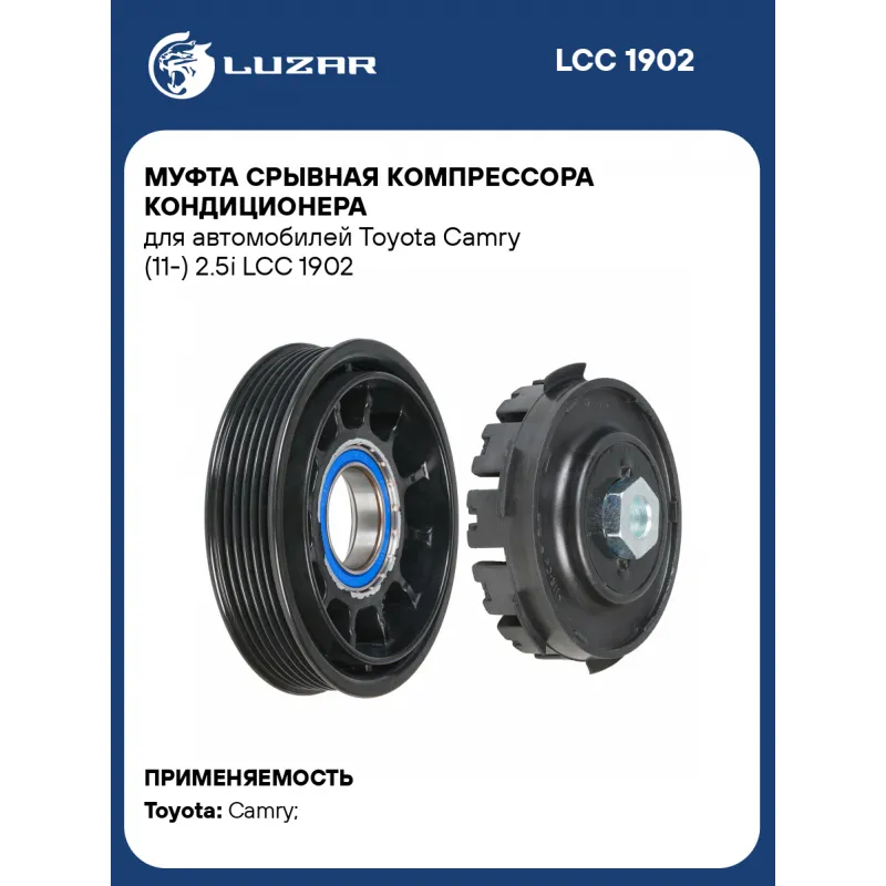 Муфта срывная компрессора кондиционера для автомобилей Toyota Camry (11-) 2.5i Характеристики: Артикул: LCC 1902 OEM номера: 88310-42333, 88310-42334, 883100R014, 883100R013 Тип шкива: 6PK Диаметр шкива: 120 Количество на автомобиль: 1 Ограничение производителя: DENSO Ид.№ компрессора: TSE14C, TSE17C Совместимость с компрессорами LUZAR: Несовместим Совместим с компрессорами кондиционера: 883100R013, 883100R014, 88310-42333, 88310-42334 Подходит для авто: Toyota Camry (11-) Для проверки применяемости отправьте VIN автомобиля через вкладку "Есть вопросы о товаре?" Комплектация: Шкив с подшипником - 1 шт Пластина срывная - 1 шт Гарантия: от 1 года.