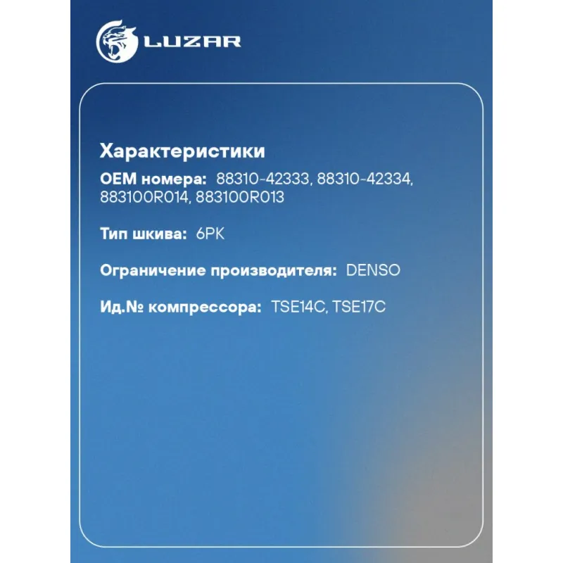| Совместим с компрессорами кондиционера | 883100R013, 883100R014, 88310-42333, 88310-42334 |