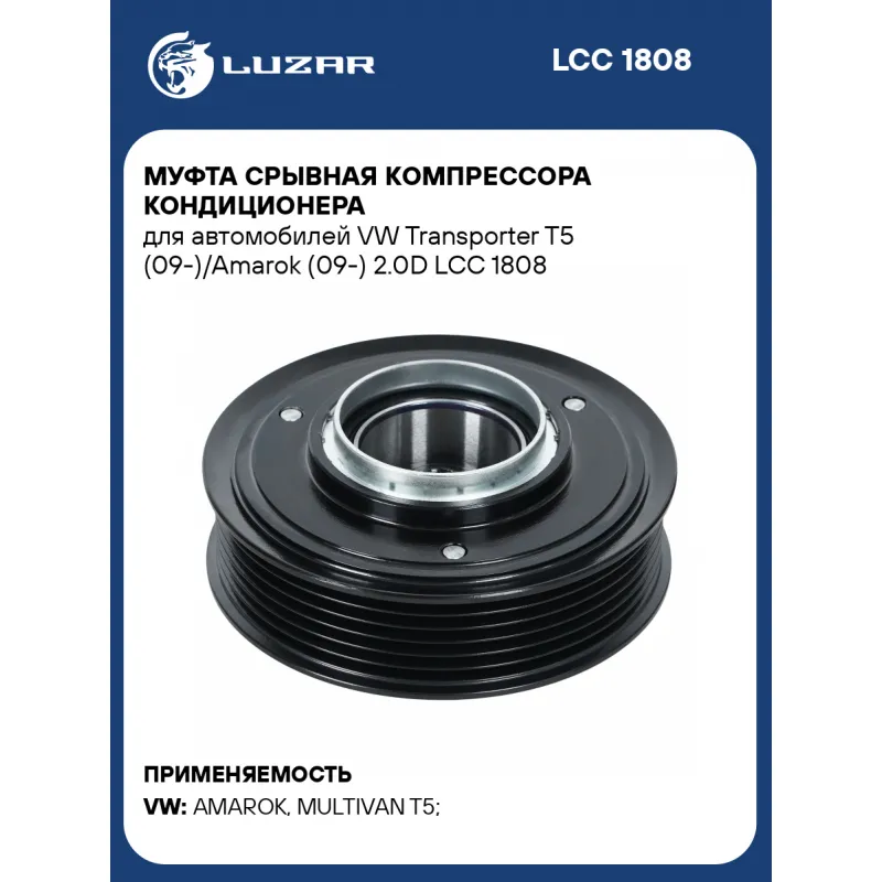 Муфта срывная компрессора кондиционера для автомобилей VW Transporter T5 (09-)/Amarok (09-) 2.0D LCC 1808 LUZAR