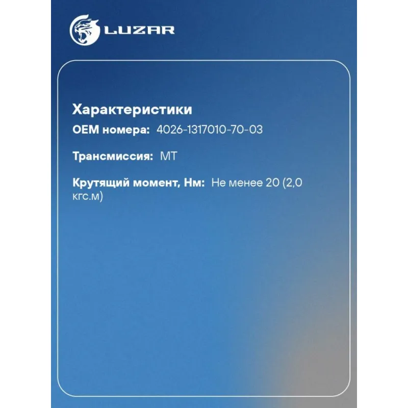 | Крутящий момент, Нм | не менее 20 (2,0 кгс.м) |