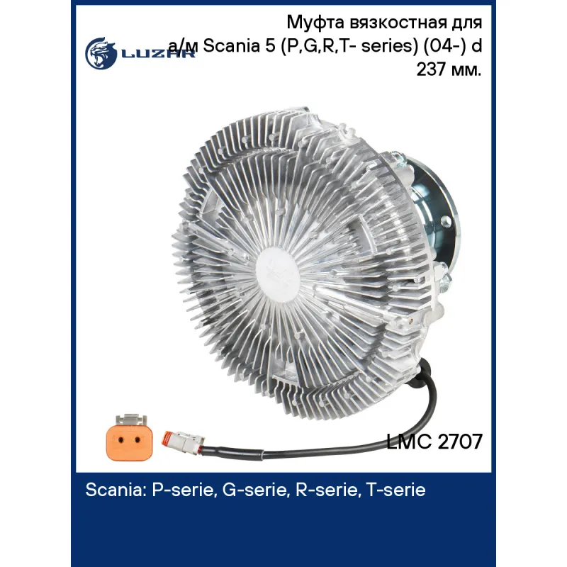 Муфта вязкостная для а/м Scania 5 (P,G,R,T- series) (04-) (электронное управление, 2-х контактный разъем, без крыльчатки) d 237 мм. Характеристики: Артикул: LMC 2707 OEM номера: 1757881, 1520308, 1471155, 1453967 Трансмиссия: MT/AT Кондиционер: + Температура включения, °С: - Температура выключения, °С: - Количество на автомобиль: 1 Разъем: 2 контакта Диаметр муфты, мм.: 247 Вид эксплуатации: электронное управление Подходит для авто: Scania P-serie (04-), G-serie (04-), R-serie (04-), T-serie (04-) Для проверки применяемости отправьте VIN автомобиля через вкладку "Есть вопросы о товаре?" Комплектация: Муфта вязкостная - 1 шт Гарантия: от 1 года.