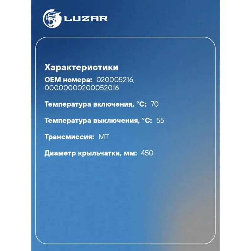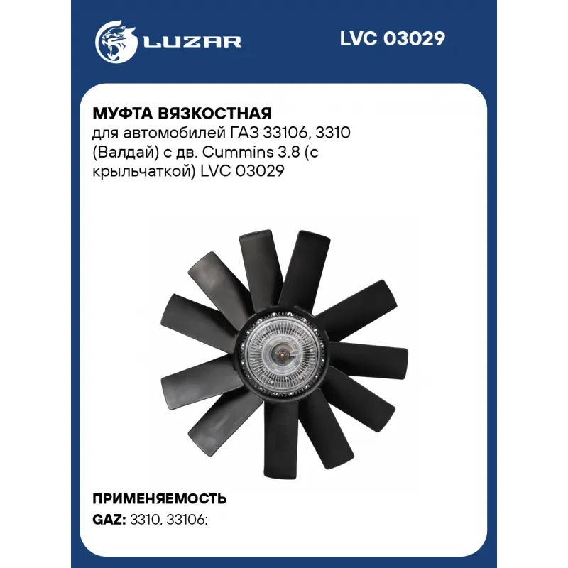 Муфта вязкостная для автомобилей ГАЗ 33106, 3310 (Валдай) с дв. Cummins 3.8 (с крыльчаткой) Характеристики: Артикул: LVC 03029 OEM номера: 020005216, 00000000200052016 Температура включения, °С: 70 Температура выключения, °С: 55 Количество на автомобиль: 1 Трансмиссия: MT Диаметр крыльчатки, мм: 450 Вид эксплуатации: термический Подходит для авто: ГАЗ 3310, 33106 Для проверки применяемости отправьте VIN автомобиля через вкладку "Есть вопросы о товаре?" Комплектация: Муфта вязкостная в сборе с крыльчаткой - 1 шт Паспорт изделия - 1 шт Шайба - 4 шт Болт - 4 шт Гарантия: от 1 года.