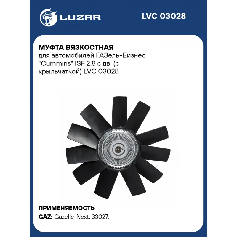 Муфта вязкостная для автомобилей ГАЗель-Бизнес "Cummins" ISF 2.8 с дв. (с крыльчаткой) Характеристики: Артикул: LVC 03028 OEM номера: 020005181, 020005158, 3302.1308060, А21R22.1308060, 2122-00-1308060-000, C42R92130801010, C42R921308010, 21221308060 Температура включения, °С: 75 Температура выключения, °С: 55 Количество на автомобиль: 1 Трансмиссия: MT Кондиционер: - Диаметр крыльчатки, мм: 395 Диаметр муфты, мм.: 152 Вид эксплуатации: термический Подходит для авто: ГАЗ Gazelle-Next (13-), 33027, Gazelle-Business, 33025, Gazelle-Next (13-), A21R22 Для проверки применяемости отправьте VIN автомобиля через вкладку "Есть вопросы о товаре?" Комплектация: Муфта вязкостная в сборе с крыльчаткой - 1 шт Шайба - 4 шт Болт - 4 шт Гарантия: от 1 года.