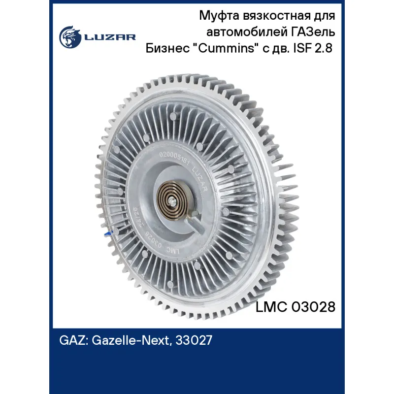 Муфта вязкостная для автомобилей ГАЗель Бизнес "Cummins" с дв. ISF 2.8 (без крыльчатки) Характеристики: Артикул: LMC 03028 OEM номера: 020005181, 020005158, 3302.1308060, А21R22.1308060, 2122-00-1308060-000, C42R92130801010, C42R921308010, 21221308060 Трансмиссия: MT Температура включения, °С: 75 Температура выключения, °С: 55 Количество на автомобиль: 1 Диаметр муфты, мм.: 152 Вид эксплуатации: термический Подходит для авто: ГАЗ Gazelle-Next (13-), 33027, Gazelle-Business, 33025, Gazelle-Next (13-), A21R22 Для проверки применяемости отправьте VIN автомобиля через вкладку "Есть вопросы о товаре?" Комплектация: Муфта вязкостная - 1 шт Гарантия: от 1 года.