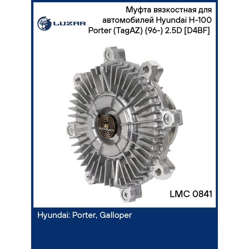 Муфта вязкостная для автомобилей Hyundai H-100 Porter (TagAZ) (96-) 2.5D [D4BF] (без крыльчатки) Характеристики: Артикул: LMC 0841 OEM номера: 2523742560, 2523742561, 2523742540, 2523742920, 2523742010 Температура включения, °С: 75 Температура выключения, °С: 50 Количество на автомобиль: 1 Трансмиссия: MT Кондиционер: +/- Двигатель: [D4BF] Диаметр муфты, мм.: 170 Вид эксплуатации: термический Подходит для авто: Hyundai Porter (H-100/TagAZ) (96-), Galloper (98-) Для проверки применяемости отправьте VIN автомобиля через вкладку "Есть вопросы о товаре?" Комплектация: Муфта вязкостная - 1 шт Гарантия: от 1 года.