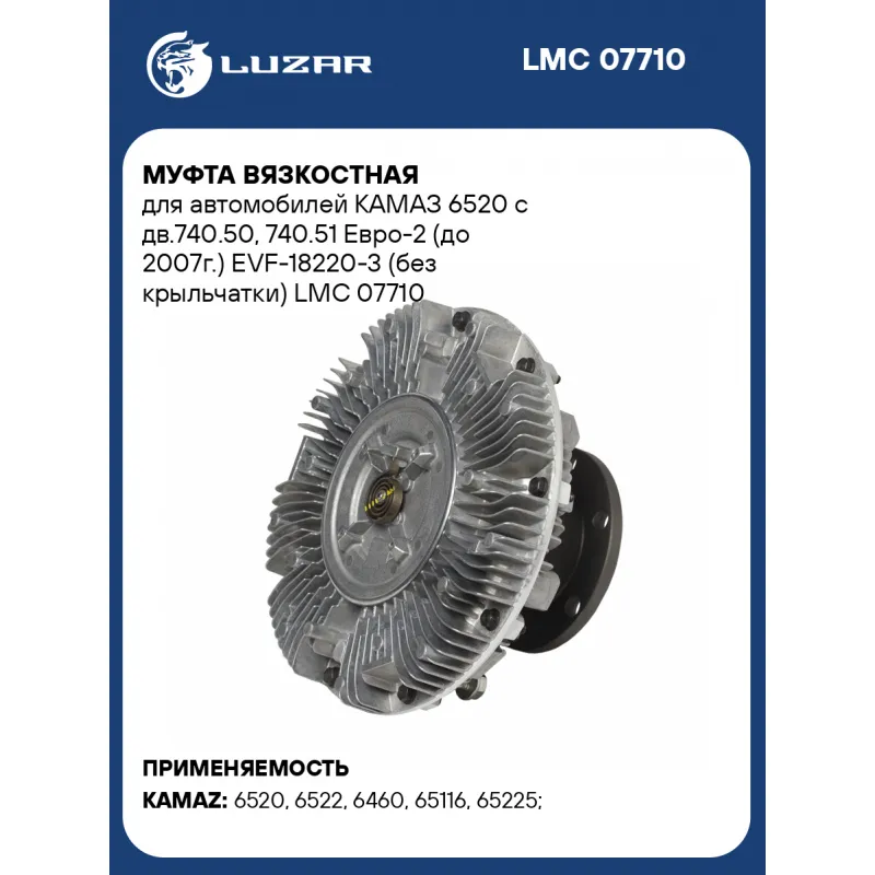 Муфта вязкостная для автомобилей КАМАЗ 6520 с дв.740.50, 740.51 Евро-2 (до 2007г.) EVF-18220-3 (без крыльчатки) Характеристики: Артикул: LMC 07710 OEM номера: 18219-3 Температура включения, °С: 75 Температура выключения, °С: 55 Количество на автомобиль: 1 Трансмиссия: MT Кондиционер: +/- Диаметр муфты, мм.: 202,5 Вид эксплуатации: термический Подходит для авто: КамаАЗ 6520, 6522, 6460, 65116, 65225 Для проверки применяемости отправьте VIN автомобиля через вкладку "Есть вопросы о товаре?" Комплектация: Муфта вязкостная - 1 шт Паспорт изделия - 1 шт Гарантия: от 1 года.