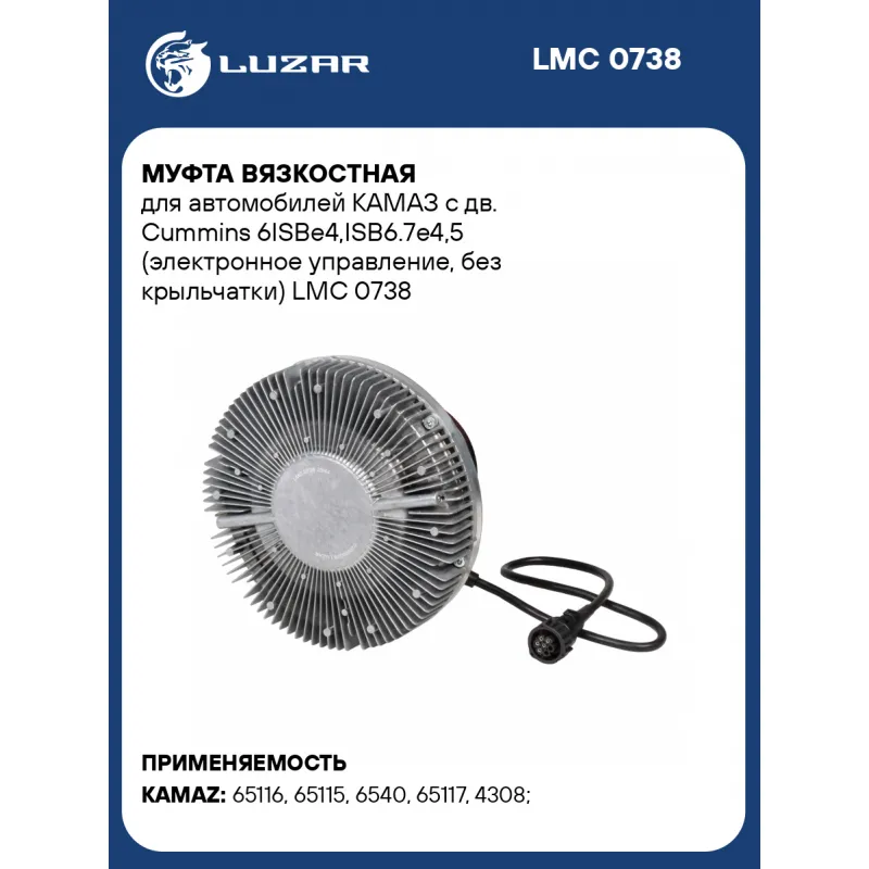 Муфта вязкостная для автомобилей КАМАЗ с дв. Cummins 6ISBe4,ISB6.7e4,5 (электронное управление, без крыльчатки) Характеристики: Артикул: LMC 0738 OEM номера: 020005338 Температура включения, °С: - Температура выключения, °С: - Количество на автомобиль: 1 Трансмиссия: MT Кондиционер: +/- Диаметр муфты, мм.: 219,5 Вид эксплуатации: электронное управление Подходит для авто: КамаАЗ 65116, 65115, 6540, 65117, 4308, 43253, 5308, 43255 Для проверки применяемости отправьте VIN автомобиля через вкладку "Есть вопросы о товаре?" Комплектация: Вязкостная муфта - 1 шт Паспорт изделия - 1 шт Гарантия: от 1 года.