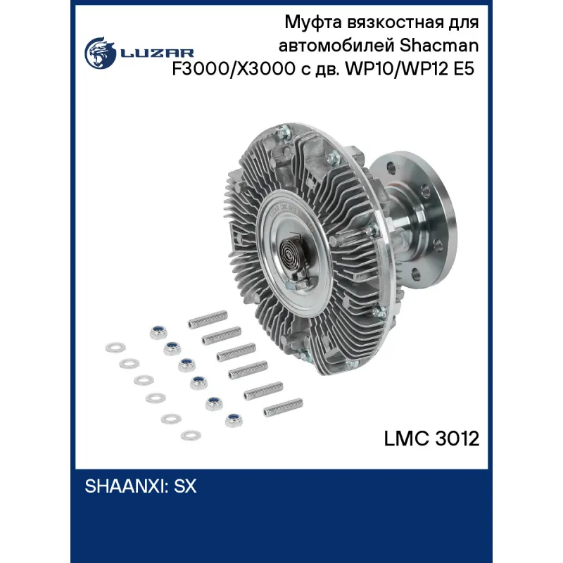 Муфта вязкостная для автомобилей Shacman F3000/X3000 с дв. WP10/WP12 E5 (без крыльчатки) Характеристики: Артикул: LMC 3012 OEM номера: 612600062150 Трансмиссия: Механическая коробка передач Сопутствующий товар: Радиаторы охлаждения: LRc 3063; LRc 3064 Температура включения, °С: 85±5 Температура выключения, °С: 50±10 Количество на автомобиль: 1 Диаметр муфты, мм.: 203 Вид эксплуатации: термический Комплектация: Муфта вязкостная - 1 шт Шайба M8 - 6 шт Гайка M8 - 6 шт Шпилька M8 - 6 шт Гарантия: от 1 года.