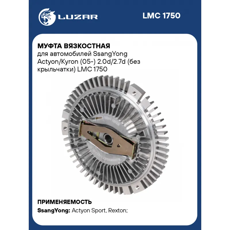 Муфта вязкостная для автомобилей SsangYong Actyon/Kyron (05-) 2.0d/2.7d (без крыльчатки) Характеристики: Артикул: LMC 1750 OEM номера: 6652000222, 6652000122 Сопутствующий товар: Радиаторы охлаждения: LRc 17130; LRc 17131; LRc 1725; LRc 1731; LRc 1750 Сопутствующий товар: Насосы водяные (помпы): LWP 1750; LWP 1751 Сопутствующий товар: Электровентиляторы кондиционера: LFAC 1750 Температура включения, °С: 75 Температура выключения, °С: 55 Количество на автомобиль: 1 Трансмиссия: MT Кондиционер: +/- Подходит для авто: SsangYong Actyon Sport (05-), Rexton (02-), Rexton (06-), Korando (95-), Musso (93-), Rodius I (04-), Kyron (05-), Actyon (05-), Rexton (02-) Для проверки применяемости отправьте VIN автомобиля через вкладку "Есть вопросы о товаре?" Комплектация: Муфта вязкостная - 1 шт Гарантия: от 1 года.