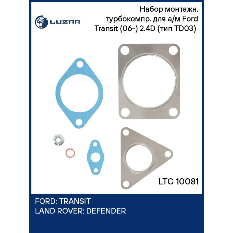 Набор монтажн. турбокомпр. для а/м Ford Transit (06-) 2.4D (тип TD03) (прокл.,шпил.,гайк.) Характеристики: Артикул: LTC 10081 OEM номера: 1372799, 1406162, 1449608, 1567328, 6C1Q6K682DD, 6C1Q6K682DE, 6C1Q6K682DF Количество на автомобиль: 1 Материал: Сталь, медь, безасбестовый картон Сопутствующий товар: Турбокомпрессор: LAT 1008... Читать полностью →